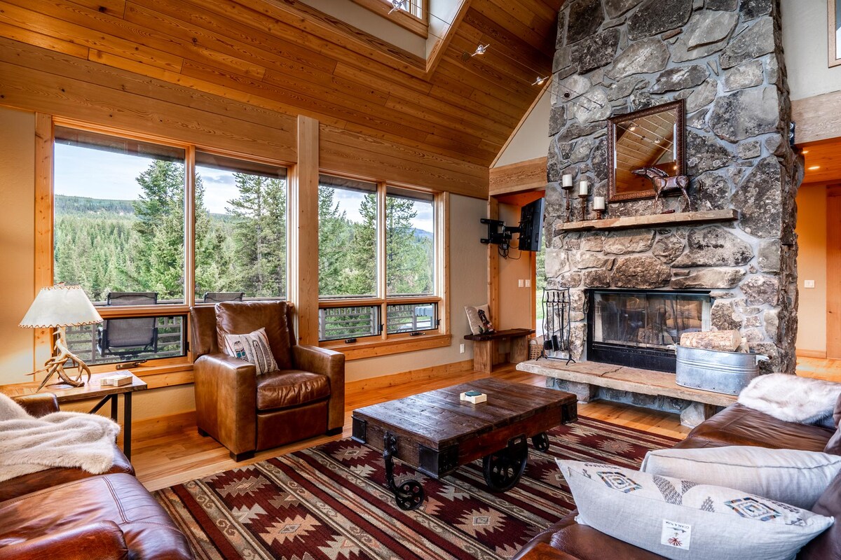 Один из самых популярных лыжных домов на Airbnb! Захватывающий вид на Lone Peak. Сложите окна, выходящие на террасу с гидромассажной ванной, грилем и горкой для детей! Чистый кислород перекачивается в две основные спальни. Камин в помещении и на улице. Открытая планировка с 25-футовыми сводчатыми потолками. Двухъярусные кровати на заказ. 1 миля езды до парковки Big Sky и 0,3 мили до подъемника White Otter 2 от дома (нельзя кататься на лыжах). Лыжня прямо к гондольному подъемнику Explorer!
