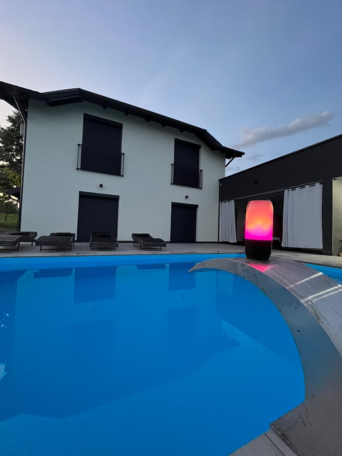 Lijepo uređen smještaj sa bazenom, dvorištem, vanjskim mini barom, kaminom za roštilj u mirnom okruženju.3 min.autom do centra.