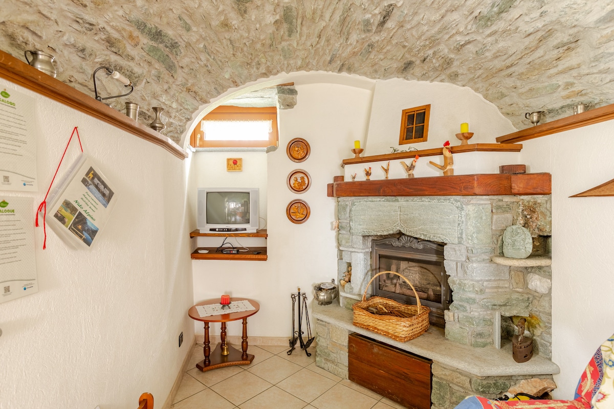 Альпы. Италия. Долина Аоста. Хижина в маленькой деревне в 1600 метрах,в тишине лугов, пасущихся коров и гор. Снег (обычно) зимой. Место сердца, с любовью восстановленное с сохранением древних балок крыши. Прекрасный вид из больших окон и особое спокойствие для тех, кто в поисках мира, тепла и релаксации. Мебель очень красивая: дерево прежде всего, но и более живые цвета, и современные удобства. Тихие экскурсии, как на снегоступах, так и на лыжах.