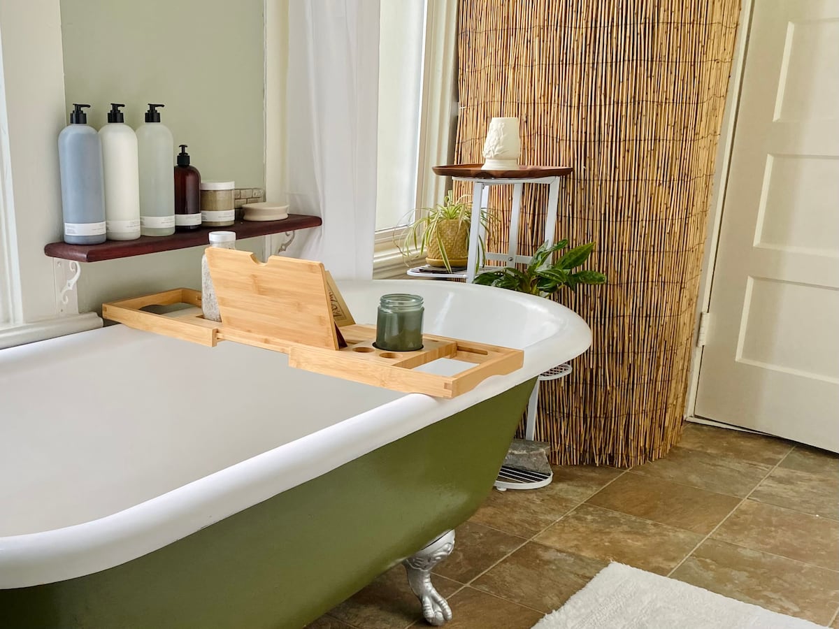 Still Waters Cottage is cozy oasis. 400 square feet with double bed, bath (shower and clawfoot tub), full kitchen, washer/dryer. You have access to a private back porch and yard as you go out french doors. You also have access to the common grounds for the entire property that includes grill, hot tub, fire pit with real wood and table for picnic by pond. two swinging chairs from tree, and two floating chairs with gas fire pit by pond. Community pool access just across from property.