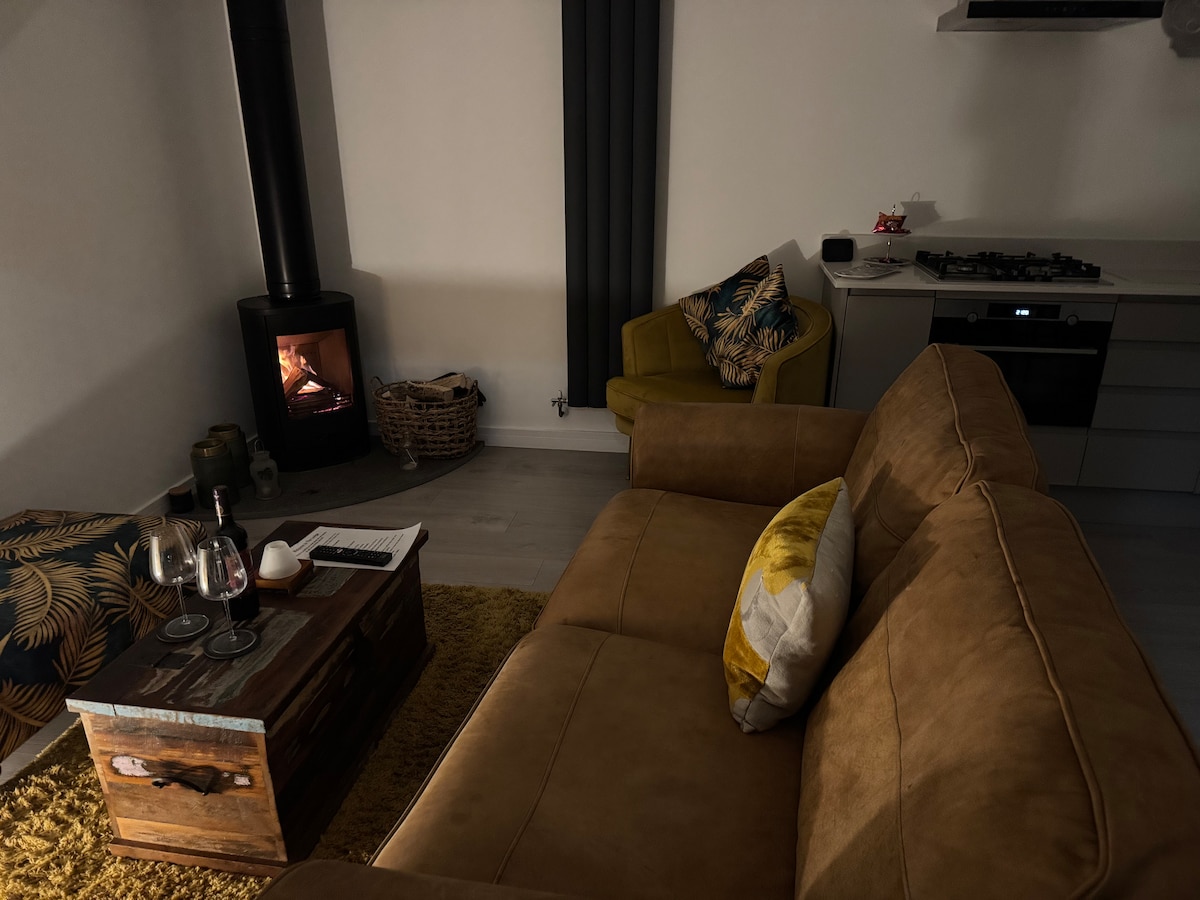 Ключевые особенности: Хорошо оборудованную кухню с кофемашиной Nespresso и аксессуарами Smeg. Удобная гостиная с телевизором с телевизором с телевизором с Netflix и Prime. Двуспальная кровать с постельным бельем из чистого хлопка. Красивая ванная комната Дровяная плита. Доступ через служебную дорогу, парковка не на улице Есть прокат велосипедов В домике есть собственное патио. Празднование особого случая мы можем предложить персонализированные подарочные пакеты На местном уровне есть несколько пабов и ресторанов и множество местных магазинов.