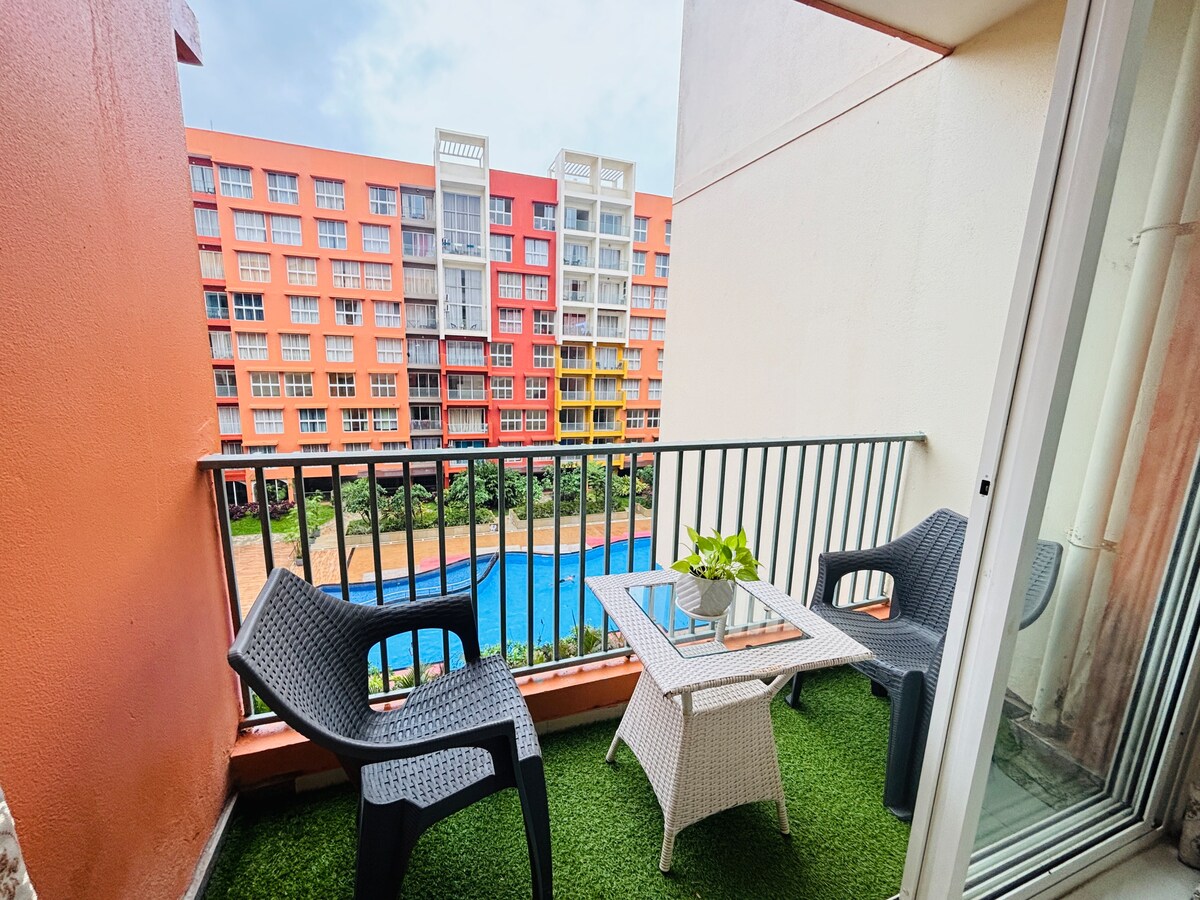 2BHK Pool view | 5mins from Airport |Zennova Stays