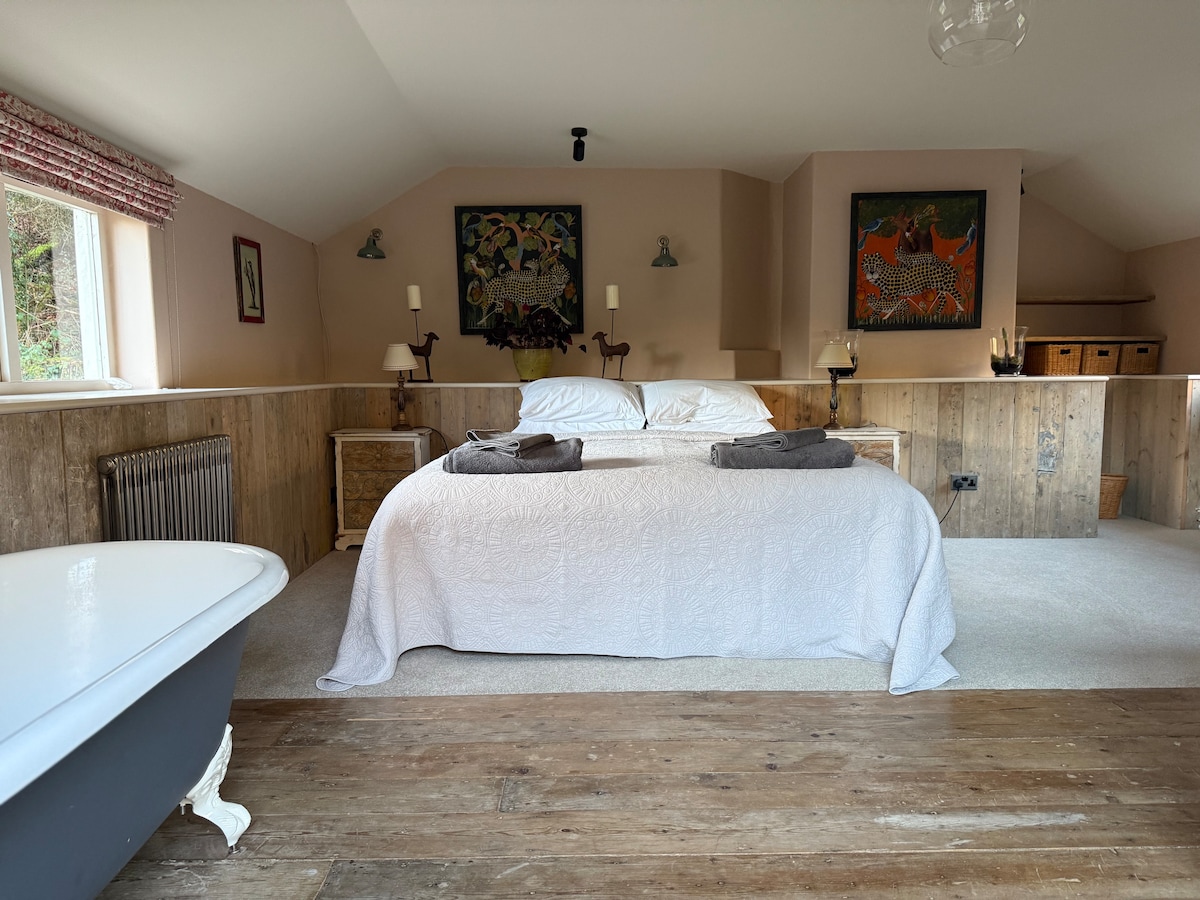 Harriet 's Hideaway - это пастушья хижина с гидромассажной ванной на дровах, идеально расположенная между Эксмуром и Дартмуром. Из окон открывается потрясающий вид, где можно попасть на нашу частную дорожку, расположенную на собственном участке с парковкой и садом. Идеальное место для пар или парных друзей, чтобы «сбежать от крысиных бегов» и сделать перерыв. Зажгите огонь и расслабьтесь, расслабьтесь в дровяной гидромассажной ванне, полюбуйтесь звездами на невероятном ночном небе или просто расслабьтесь и насладитесь спокойной обстановкой.