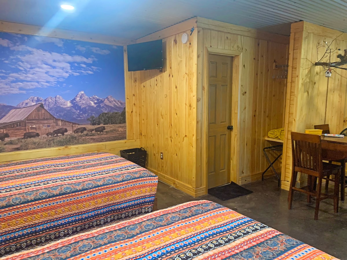 После насыщенного приключения на открытом воздухе расслабьтесь в нашем Seek и Snore Cabin. Наши внуки вдохновили нас на создание этого тематического домика «I Spy», который демонстрирует некоторые из их любимых вещей во время знакомства с заповедником дикой природы Уичито-Маунтинс, который находится менее чем в 3 милях. Расположенный у подножия гор Уичито, The Lazy Buffalo имеет 13 индивидуальных тематических домиков и бунгало. Хижина Seek and Snore Cabin вмещает 4 гостей с 2 кроватями размера Queen size.