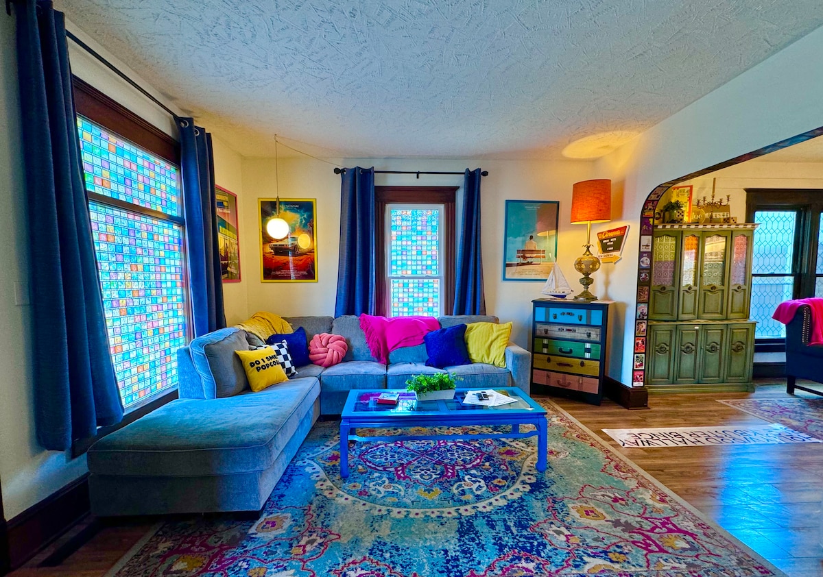 Эта частная игровая площадка в стиле ретро, признанная лучшим местом для посещения в Иллинойсе, — это место, где светятся аркадные огни и оживают ночи кино. Соревнуйтесь за лучшие результаты, расслабьтесь в джакузи и отдохните у костра под гирляндами. Идеально подходит для семей, групп друзей, дней рождения, девичников/мальчишников и торжеств. Это уникальное жилье в Блумингтоне находится в 3 минутах от центра города!