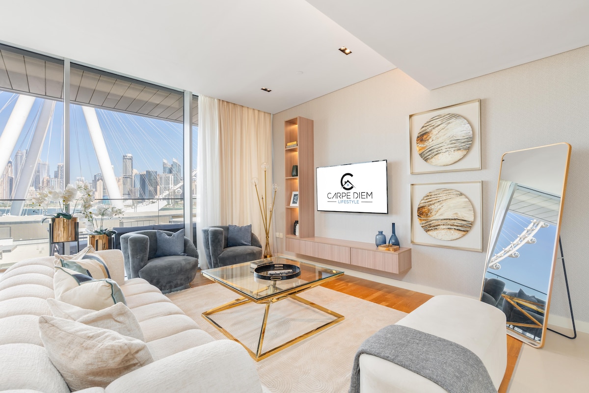 Из окон открывается потрясающий вид на море и Ain (Dubai Eye) с комфортом, любуясь собственными апартаментами Bluewaters Island. В этой квартире элегантная мебель, а также стильный декор и искусство по всей квартире. Квартира полностью оборудована кухней открытой планировки и просторной гостиной для отдыха. Квартира находится в 7 минутах ходьбы от JBR и пляжа, в 2 минутах ходьбы от Ain («Глаз Дубая») и «Мадам Тюссо», а также в 25 минутах от аэропорта.
