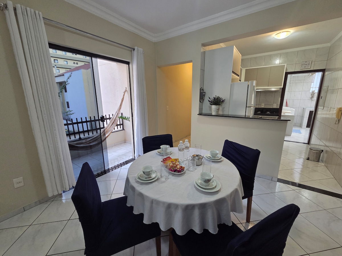 Хорошо расположенная квартира, недалеко от центра Блуменау и парка Vila Germânica (Октоберфест, примерно в 4 км). К услугам гостей крытый гараж, балкон с барбекю, детская площадка и место для домашних животных. В квартире есть полностью оборудованная кухня (холодильник, плита, духовка и посуда) и спальня с кондиционером. У нас есть полотенца и постельное белье.