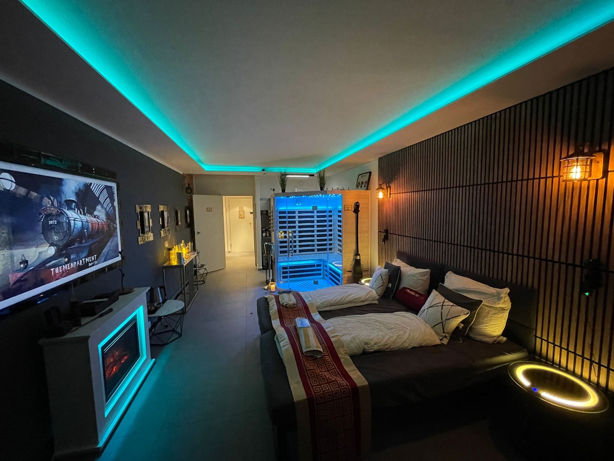 Добро пожаловать в тематическую квартиру! погрузитесь в волшебный мир в нашу уникальную тематическую квартиру. Насладитесь комфортом двуспальной кровати и расслабьтесь в собственной инфракрасной сауне. Откройте для себя развлечения на новом уровне с нашим телевизором SAMSUNG Frame TV, который легко вписывается в современный декор. Освежитесь в нашем стильном душе, любуясь потрясающими видами на город. Откройте для себя магию <3