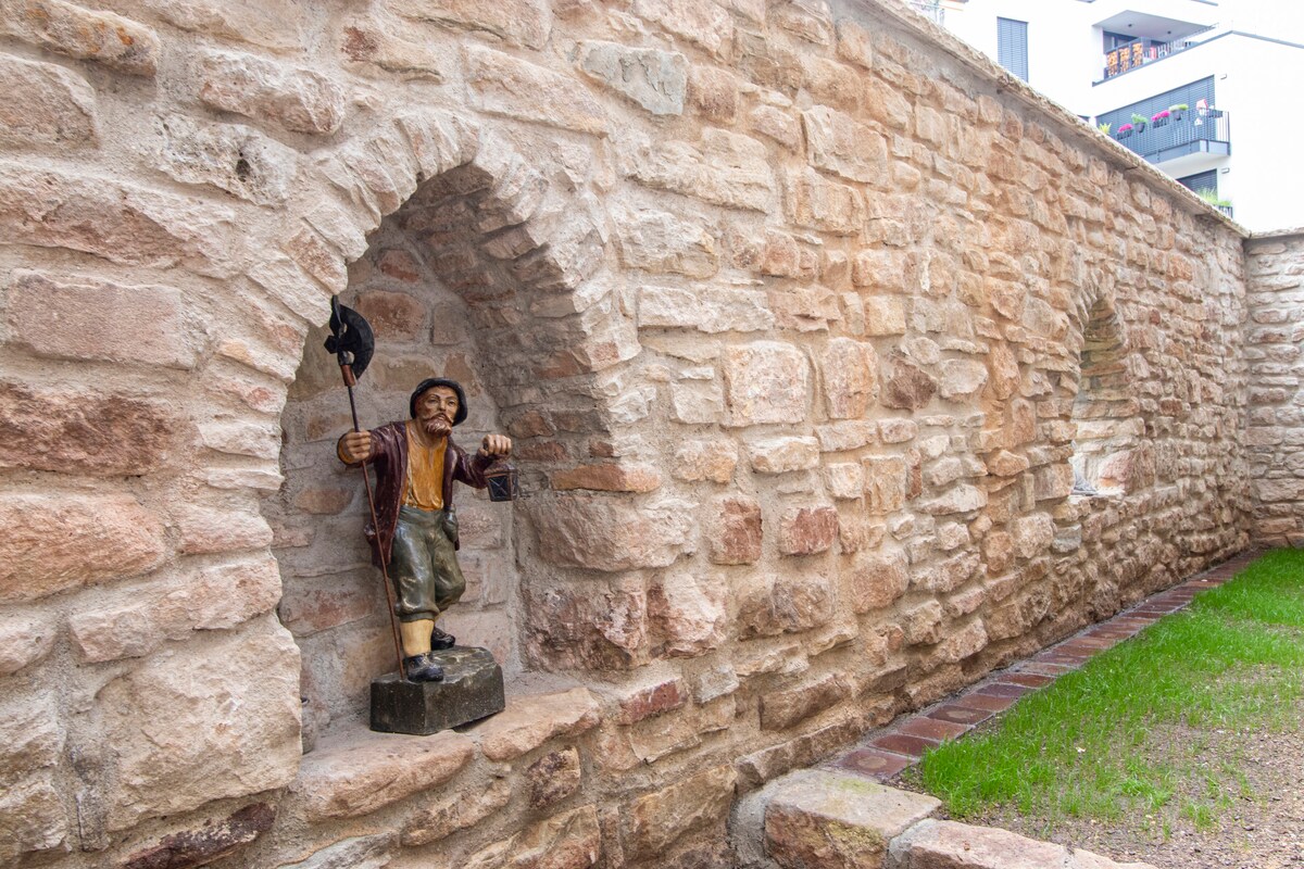Индивидуальное отпускное жилье – просто чувствуйте себя хорошо Квартира на первом этаже дома Андреа Марофке сочетает в себе очарование старого дома с современным комфортом. Большие окна пропускают много света в просторную гостиную. Оснащена множеством произведений искусства в квартире и большим художественным садом. Очень тихая окраина в прекрасном Фогтленде, утром вас разбудит пение птиц. Мы провинция и космополит ☀️