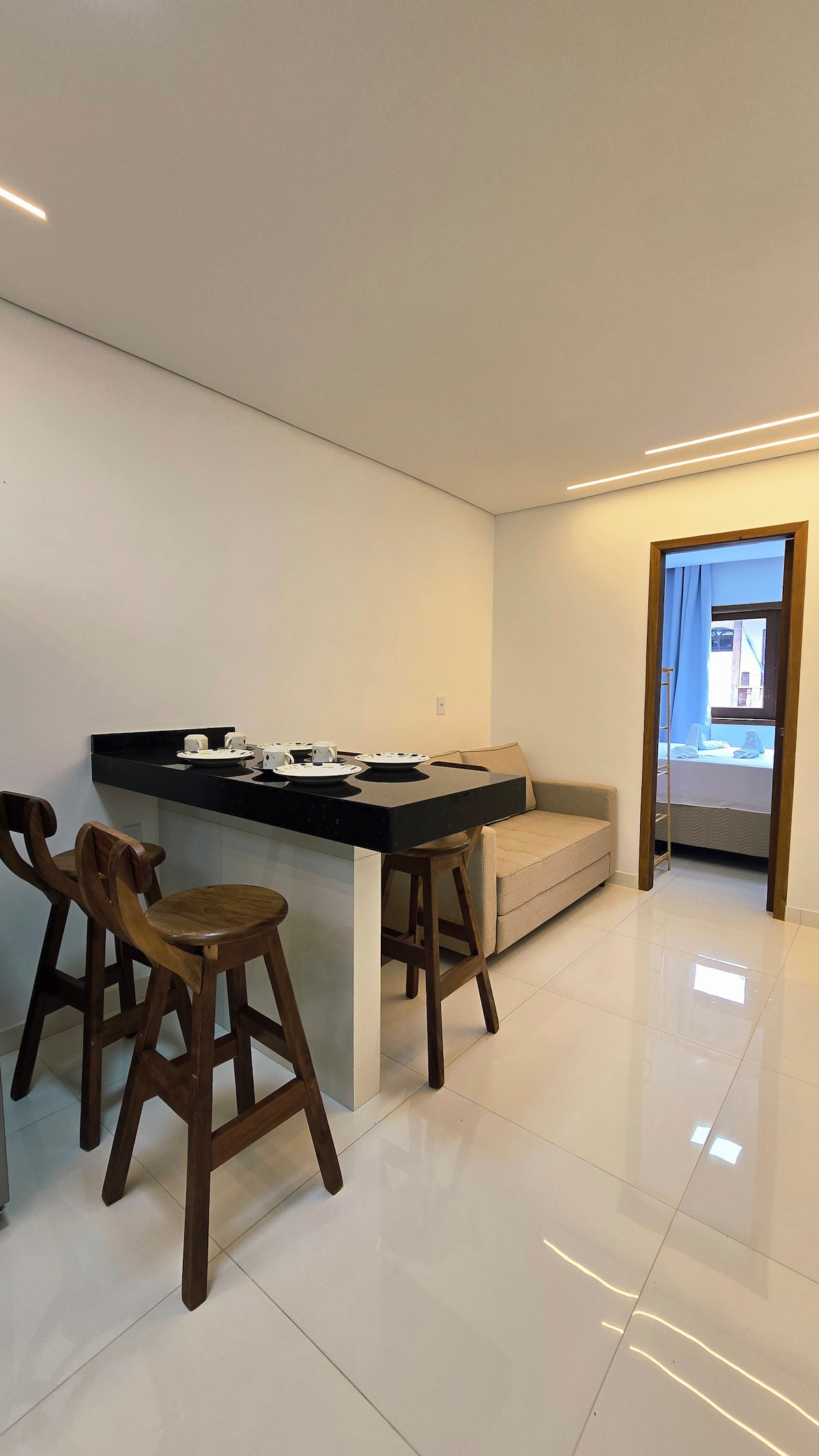 Nosso apartamento é novinho e super arejado, fica na praia, muito charmoso e completo faz você se sentir em casa. O apartamento tem uma cama de casal, banheiro completo, cozinha completa. Estamos localizados na praia da Boca da Barra onde acontece o mais lindo pôr do sol. A acomodação conta com roupa de cama e toalhas de banho.
