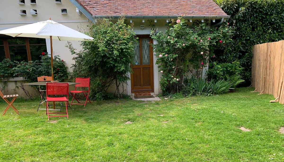 🌿 Уютная НЕЗАВИСИМАЯ студия, расположенная в центре нашего дома Meulière с собственным садом, рядом с Фонтенбло и железнодорожным вокзалом (Париж 35 мин). 📍10 минут пешком до железнодорожной станции Буа-ле-Руа. 👨👧👦 Максимум 2 взрослых и 1 младенец или 1 ребенок 👀 Соблюдается конфиденциальность — отдельный вход. ✅ Уборка, постельное белье и полотенца включены в стоимость. ⌚ Заезд с 16:00 — Выезд до 11:00. 🗝️ Доступ к жилью с помощью ящика для ключей. Если вы предпочитаете личную доставку, сообщите мне, чтобы я мог встретить вас 😊