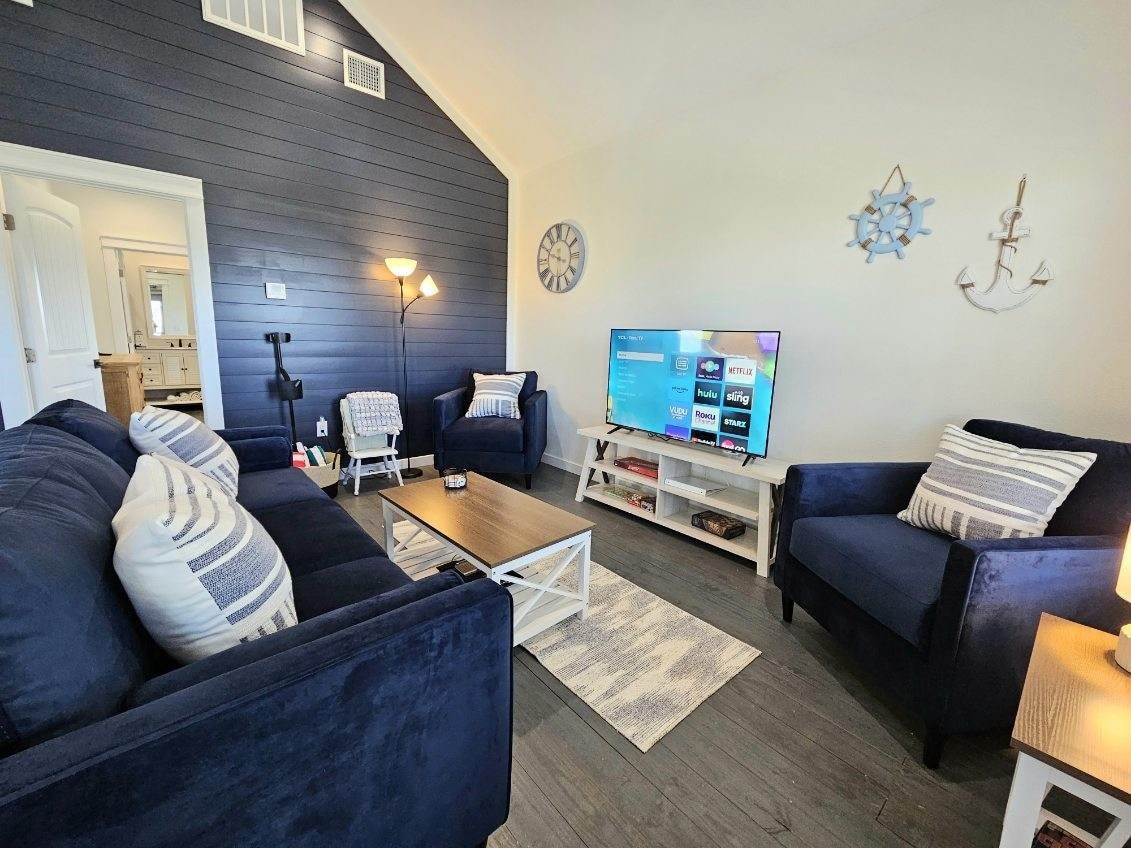 • Гидромассажная ванна, зеленая и игровая комната с пинг-понгом, футболом и дротиками! • Потрясающая терраса на втором этаже с видом на 270°. • Великолепный тики-бар на открытом воздухе, костровая яма, гамаки и многое другое! Этот дом расположен в центре Кристал-Бич с магазинами и ресторанами всего в 2 минутах езды! Или вы можете остаться дома и выпить кофе и пляж на заднем крыльце. На модной, полностью укомплектованной кухне есть полный кофе-бар, и вы можете насладиться едой или напитками с друзьями и семьей.