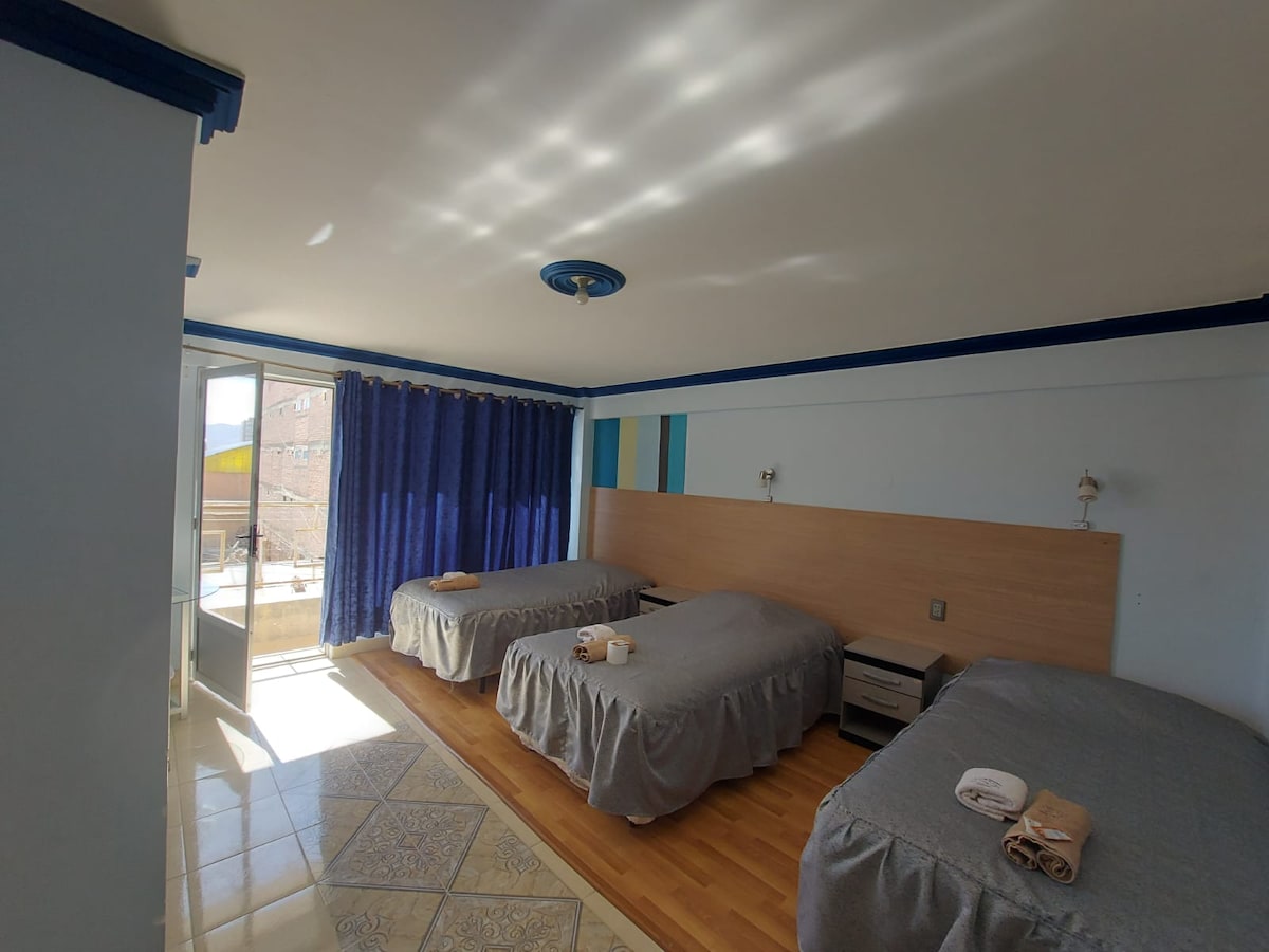 хостел знаком с дизайном киноа. Из окон открывается вид на закат. Есть бесплатный личный завтрак. У нас есть дешевый магазин ремесел, и мы находимся в двух кварталах от автовокзала. у нас есть одноместные, трехместные и четыре двухместных номера с двуспальными кроватями и семейные комнаты для 5 человек с общей ванной комнатой, и у нас есть двуспальная и двухместная семья для трех человек с собственной ванной комнатой