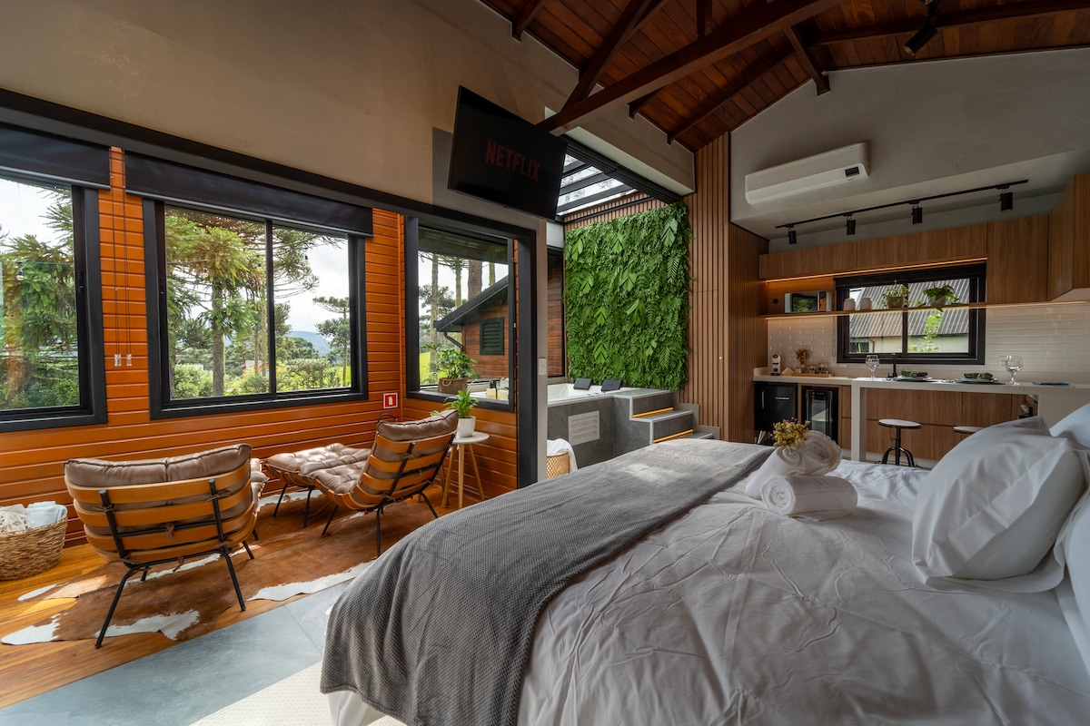 Романтический отдых на природе с прудами, тропами и всей удобствами. Гидромассажная ванна, камин, полностью оборудованная кухня и много уединения. Приезжайте и создайте драгоценные воспоминания в тихой, романтической обстановке. Cabana Pé do Costão расположен в Бом-Ретиру и в нескольких километрах от Урубичи/Южная Каролина. Забронируйте сейчас, чтобы найти незабываемые моменты, чтобы приехать с близкими!