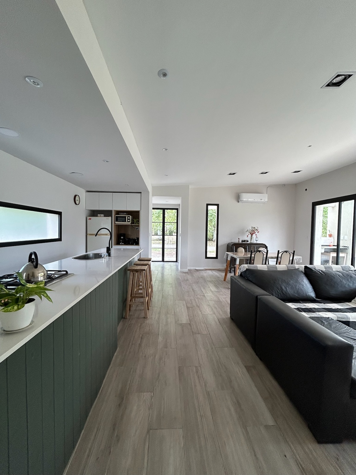 Nuestro complejo cuenta con un amplio parque ideal para el descanso y el disfrute al aire libre, que incluye una pileta amplia. Dispone de un quincho iluminado, parrillero y una mesa con capacidad para 10 personas, pensados para compartir cómodamente en familia o con amigos. Además, el complejo cuenta con cámaras de seguridad ubicadas en el ingreso y en el parque trasero. La casa cuenta con heladera, agua caliente y fría, utensilios y mesa y sillas para 6. Capacidad para dormir 6 personas.