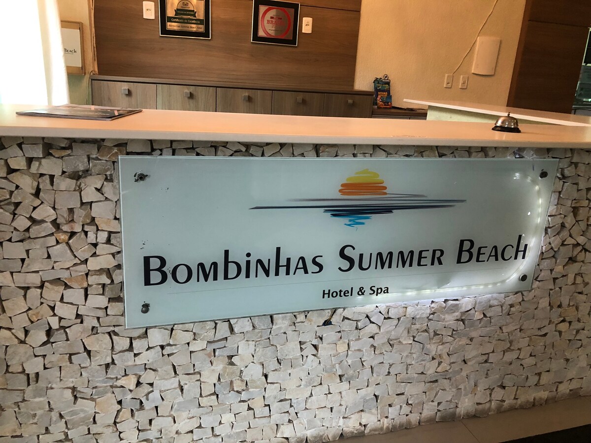 Bombinhas Summer Beach, расположенный в Прайя-де-Бомбас, объединяет все условия, необходимые для отличного пребывания КОНДОМИНИУМ Открытые бассейны Бассейн с подогревом Сауна. Тренажерный зал Кино. Игровая комната для детей и взрослых. Поворотная парковка при наличии свободных мест. Wi-Fi. круглосуточная охрана; 400 м до пляжа. КВАРТИРУ комната с двуспальной кроватью размера Queen size Полностью оборудованная кухня Подсобное помещение пляж acc Комната с 2 односпальными кроватями Телевизор Воздух Гриль ПОСТЕЛЬНОЕ БЕЛЬЕ НЕ ВКЛЮЧЕНО