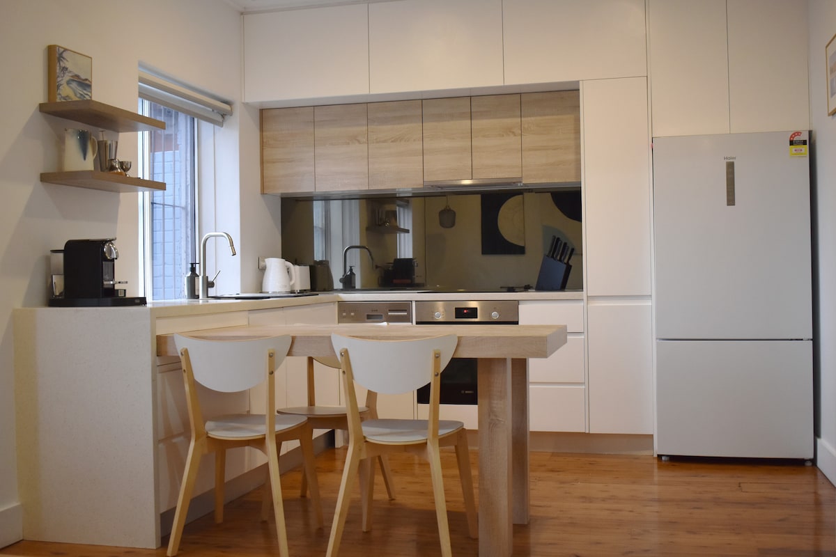 1 Bedroom Apartment with private entry. New kitchen fully kitted with large fridge, stove, oven and dishwasher. New Bathroom and Laundry with Washing/Dryer Machine. Separate Bedroom with Queen Bed and double Built-in wardrobe with drawers and hanging space. Spacious living & dining room and Balcony to relax Unrestricted street parking available Unlimited broadband Wifi Walk to Bus Stop, Bondi Beach, cafes, shops, top restaurants, easy trip to Sydney CBD and close to Sydney Harbour