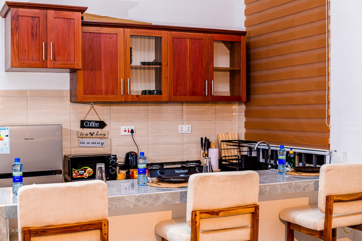Welcome to Orchid Homes, a stylish and modern 1BR apartment near the beach in Mbezi Beach, Afrikana. Designed for comfort and elegance, it features a queen bed, bright living area, fully equipped kitchen, fast WiFi, Smart TV, and a workspace. Set in a quiet, secure neighborhood with easy access to top spots in Dar es Salaam. Ideal for business travelers and long stays, offering a calm, private, and well-managed experience.