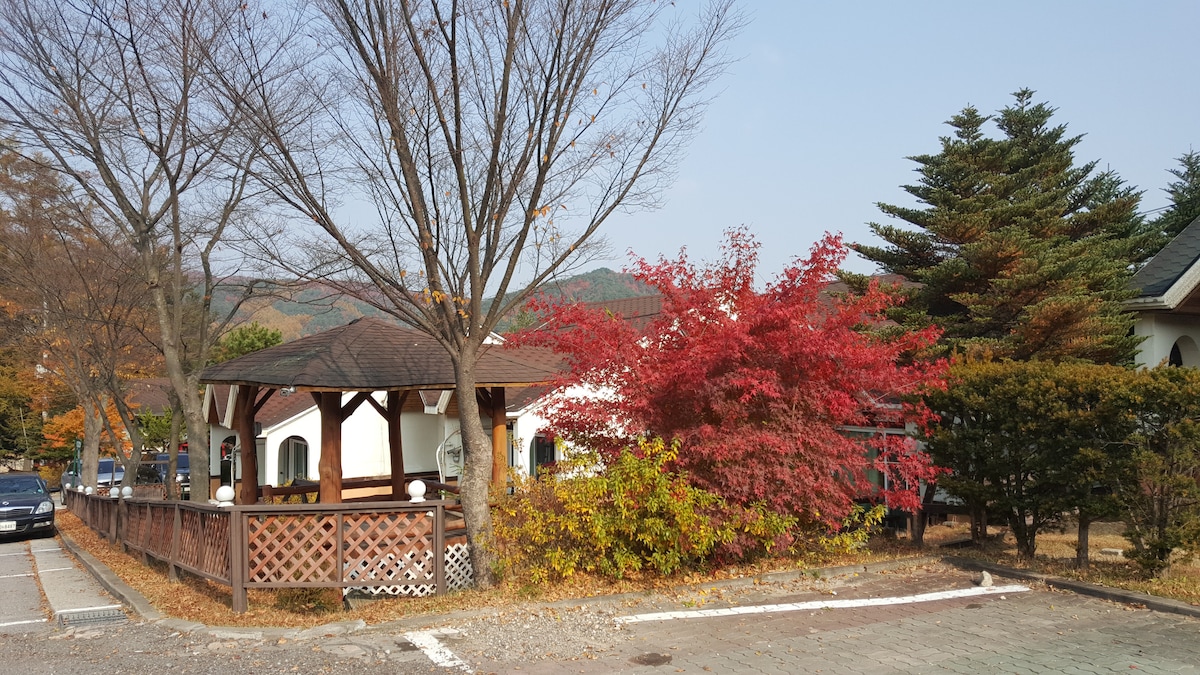 Я родился и вырос в этой долине, окруженной горами и лесами. Мне нравится европейский антиквариат, поэтому я открыл свое жилье, чтобы поделиться тем, что я собрал, с теми, кто приезжает сюда. Это очень просторное жилье с 1-м и 2-м этажами, поэтому оно подходит для нескольких семей или больших собраний. Самое лучшее то, что вокруг нет частных домов, так что это удаленное и уединенное место, где можно громко включать музыку, глядя на огонь и звезды всю ночь. В доме есть караоке. Снаружи есть место для барбекю и камин в стеклянной теплице, так что вы можете использовать его тепло и эмоционально даже в холодные зимы. Кроме того, есть европейский антикварный мебельный магазин, сифонный кофе и песочный кофе, пицца и морковный торт, уникальная живопись и деревянный поднос и т. д. Здесь также есть антикварный выставочный зал Coca-Cola, роскошный магазин льняной и хлопковой одежды, поэтому я уверен, что вы проведете очень особенное и счастливое время, даже если остановитесь на неделю. Если вы остановитесь один раз, у вас будет лучший опыт, который останется в вашей памяти надолго Мы будем рады приветствовать вас.