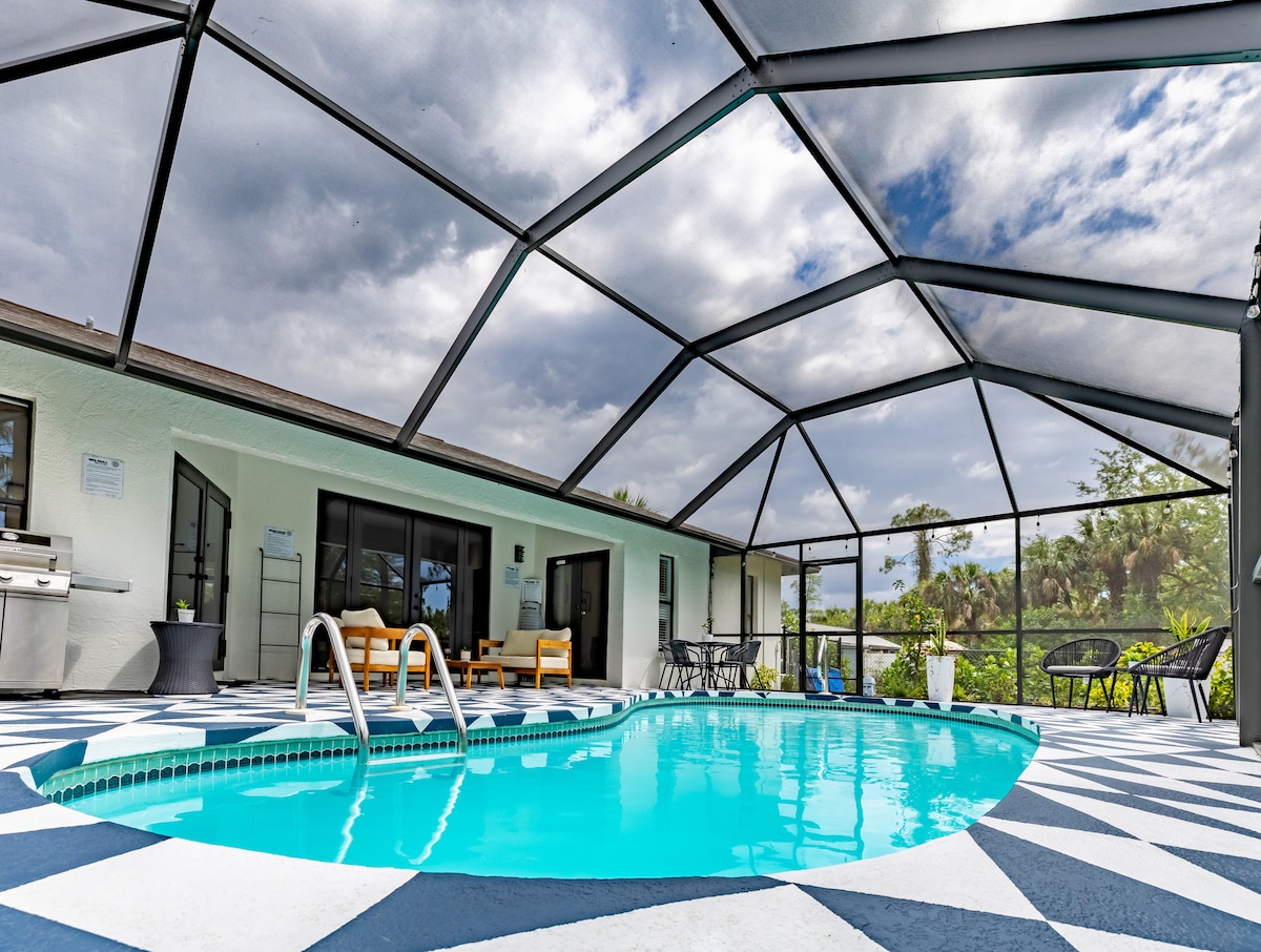 Добро пожаловать в Форт-Майерс-Бич! В Coconut Shack насладитесь УДИВИТЕЛЬНЫМ БАССЕЙНОМ С СОЛЕНОЙ ВОДОЙ и солнцем на веранде всю вторую половину дня. Готовьте на гриле, отдыхайте или отправляйтесь на ПЛЯЖ — пляжное снаряжение включено! ПОТРЯСАЮЩАЯ КУХНЯ/БАР НА открытом воздухе. Арендуйте ЛОДКУ и припаркуйтесь в конце улицы и ПРОГУЛЯЙТЕСЬ до дома! Свежий кофе запасается до вашего приезда, и вы всего в 20 минутах езды от аэропорта. Все, что вам нужно, ничего лишнего - только солнце, вода и чистый отдых.