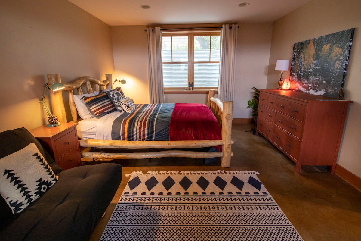Ваш собственный Teton Basecamp! 7 спальных мест с комфортом! Недавно отремонтированная частная жизнь площадью 600 кв. футов. Жилье ПРОХЛАДНОЕ все лето! 2 хорошо оборудованные комнаты — ОГРОМНАЯ главная спальня с прилегающей 2-й спальней — семейная комната и просторная ванная комната с туалетом — 2 кровати размера Queen size + 2 односпальные кровати размера XL (все матрасы HEAVENLY Tempur-Pedic) + футон + диван. Рабочий стол для наших кочевых гостей. Это место ДЫШИТ современной, западнойиздоровой жизнью! Отдельная семейная комната с обеденным столом, кофеваркой, микроволновой печью, мини-холодильниками и тарелками, мисками и столовыми приборами.