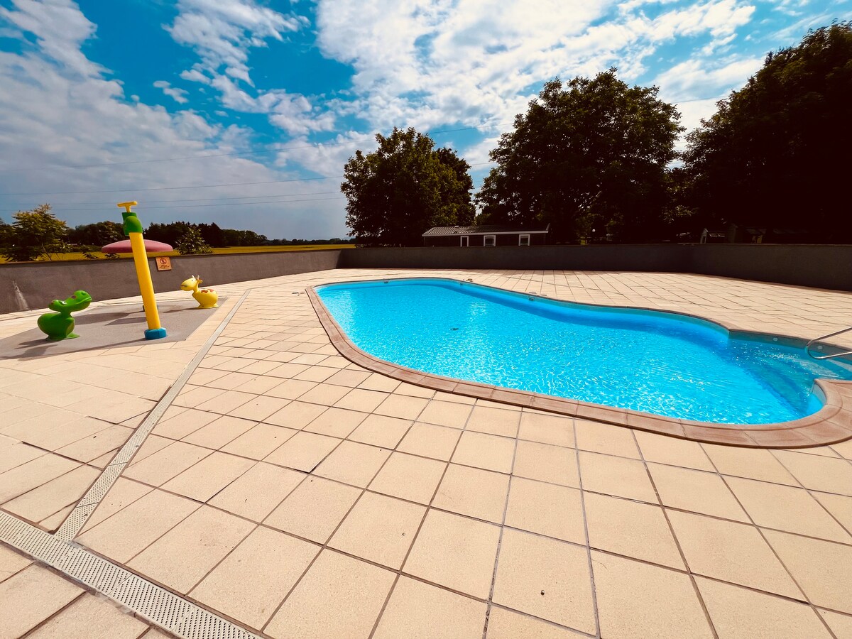 Хотите путешествовать с семьей в полной независимости и автономии в нескольких шагах от Europapark и Rulantica?! Этот коттедж укомплектован и удобен благодаря двум спальням, гостиной с кухней и ванной комнате с ванными комнатами. Красивая терраса с защищенной частью позволит вам расслабиться и провести время с семьей. Все в центре кемпинга, где все находится поблизости. Обратите внимание, что постельное белье и полотенца предоставляются по желанию.