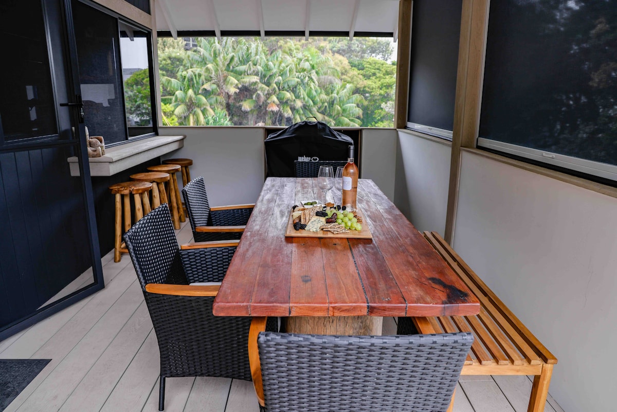 *Постельное белье предоставляется* *NBN Wi-Fi* Netflix Идеальное расположение в 2 минутах ходьбы от пляжа Блуис. 1 минута до магазинов, кафе, винного магазина и превосходной пиццерии. Сядьте на палубу, обращенную к востоку, утром (морские проблески!), наслаждайтесь завтраком под бдительным присмотром местной птичьей жизни. Самообслуживание на полноразмерной кухне с большим холодильником (также барным холодильником). Много наружного пространства.