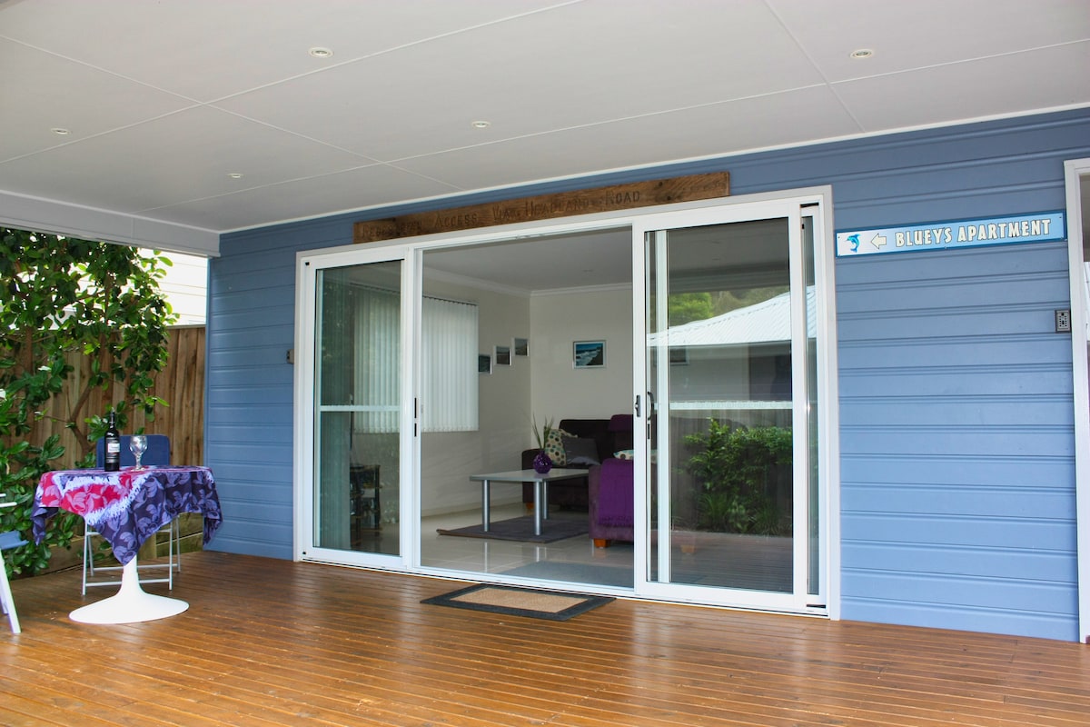 *Постельное белье предоставляется* *NBN Wi-Fi* Netflix Идеальное расположение в 2 минутах ходьбы от пляжа Блуис. 1 минута до магазинов, кафе, винного магазина и превосходной пиццерии. Сядьте на палубу, обращенную к востоку, утром (морские проблески!), наслаждайтесь завтраком под бдительным присмотром местной птичьей жизни. Самообслуживание на полноразмерной кухне с большим холодильником (также барным холодильником). Много наружного пространства.