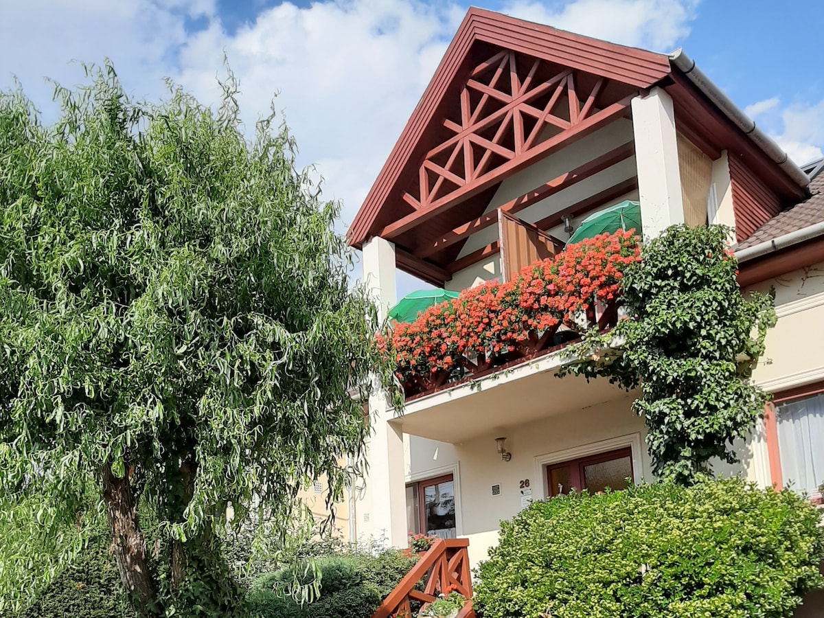 К услугам гостей крытая терраса с москитными сетками, уголок для отдыха, принадлежности для барбекю, филагория, а также вид на сад и озеро. Новая велосипедная дорожка позволяет объехать горы Земплен. Те, кто хочет активно отдохнуть, могут отправиться в поход, заняться водными видами спорта или посетить парк приключений. Любители вина могут принять участие в винных турах, винных ужинах и посещениях виноделен. Квартира подходит для дней рождения, девичников, мальчишников, тимбилдинга или любых семейных и дружеских встреч.