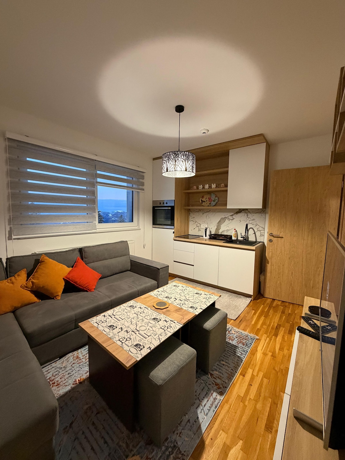 Relax with the whole family in a peaceful place to stay. Located at 1600m above sea level, just 5 minutes from the newly built six-seater Trnovo and the ski slopes. The apartment is fully equipped. Living room with flat-screen Smart TV and WiFi, kitchen and dining room with all necessary amenities, fully equipped bathroom and bedroom with comfortable and cozy bed. For storing clothes, you can find a spacious closet in the hallway and bedroom. There is a ski locker inside the building.