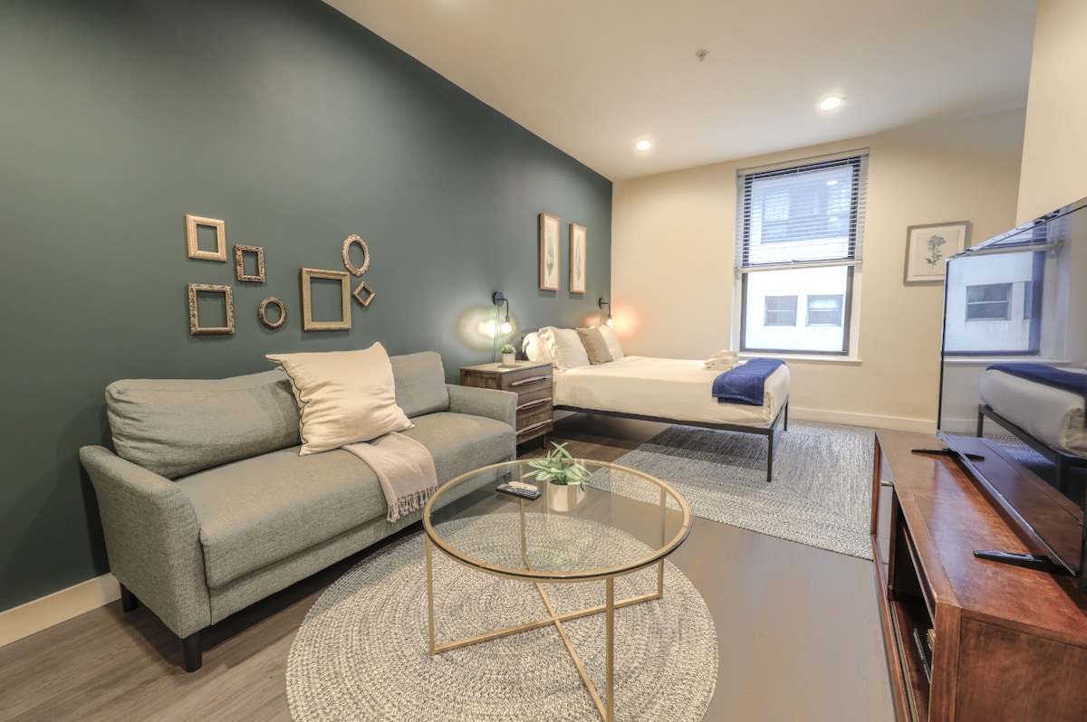 Эта теплая квартира-студия в центре Бостона - идеальное место для проживания! Расположенная недалеко от Бостонского общего парка и самой квартиры, просторная и современная, с большим количеством естественного света и уютной атмосферой. Студия оборудована кроватью размера «queen-size» с 75-дюймовым телевизором. Это идеальное место для отдыха после тяжелого рабочего дня или тура по всему Бостону. Театральный район, Бостон Коммон, Чайнатаун, Саут-Энд и Норт-Энд находятся в непосредственной близости от парка и от центра Бостона