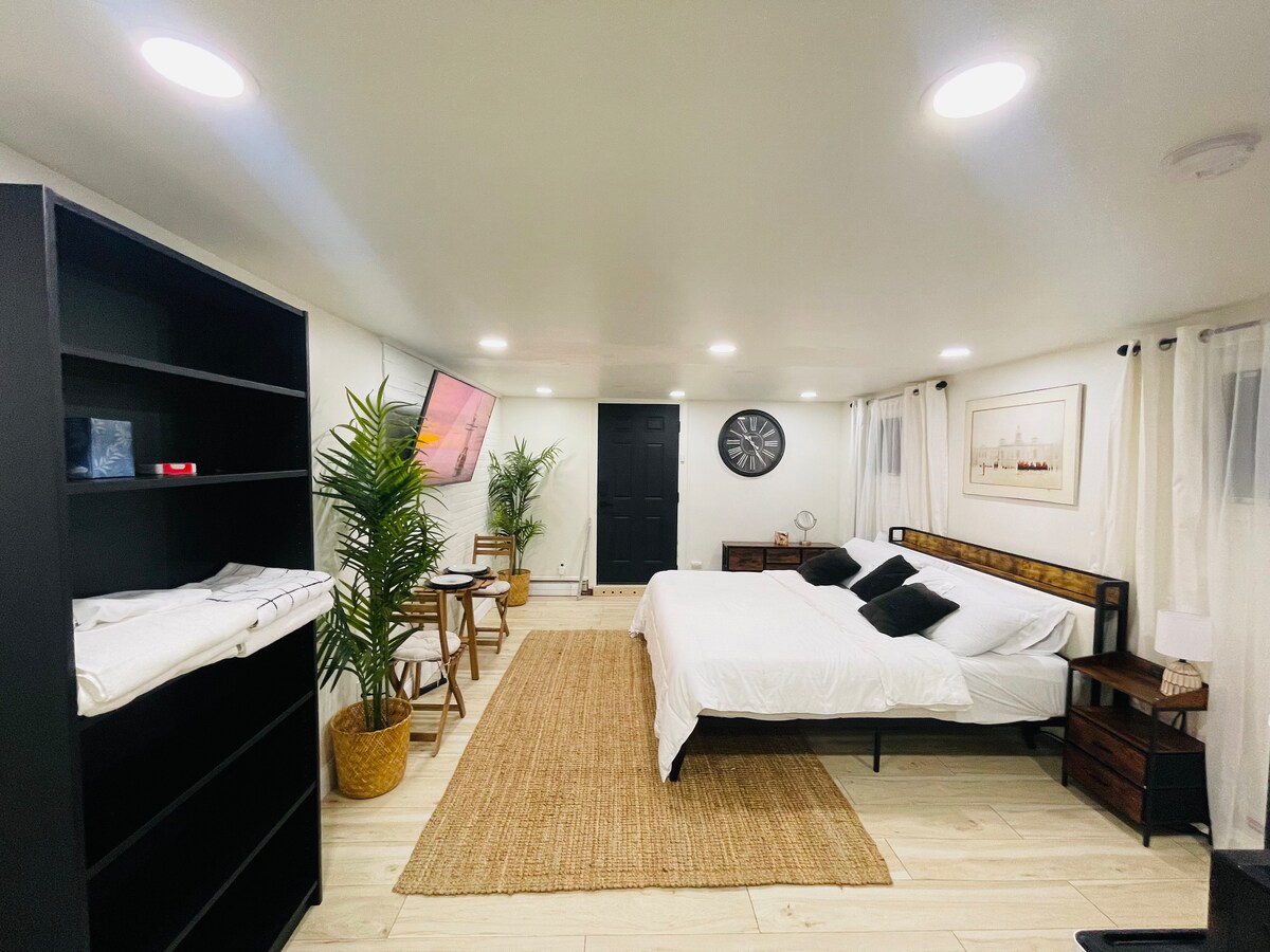 Discover the charm of our delightful 300 sqft studio, thoughtfully designed for your comfort. This cozy space features a well-equipped mini fridge, microwave, and kettle, ensuring your convenience during your stay. Rest soundly on the plush queen bed, and for extra accommodation, the sofa easily transforms into a second bed.