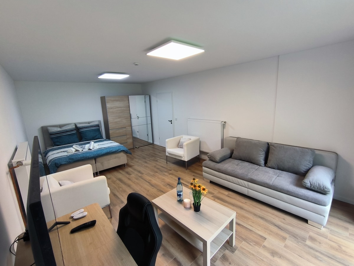Очаровательная небольшая квартира с балконом на 2 человека, примерно в 2,5 км от центра Бохума, вы почувствуете себя как дома во время вашего пребывания - как работающий или культурный путешественник: полностью оборудованная кухня-гостиная, просторная ванная комната, уютная спальня с двуспальной кроватью. Инфраструктура: супермаркет по соседству, различные рестораны и рестораны в пешей доступности. Связь с сетью шоссе также находится неподалеку, очень хороший доступ к общественному транспорту.