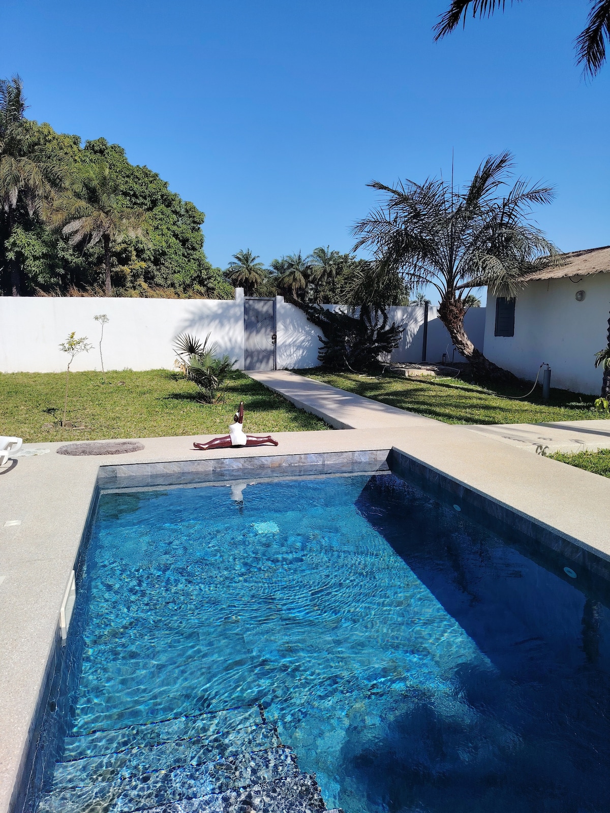 A 400m d'une magnifique plage de sable Philippe vous accueille en Casamance dans un environnement à la végétation tropicale. Intimité et calme sont au RV. Ce logement paisible de 95m2 offre un séjour agréable pour toute la famille. Belle terrasse de 40m2 ainsi que 3 chambres climatisées (lit 160/190 avec moustiquaire) de 2 personnes chacune et 2 salles de bain dont une avec WC indépendant. Une belle cuisine extérieure Options : - petit déjeuner : 3 500Fcfa