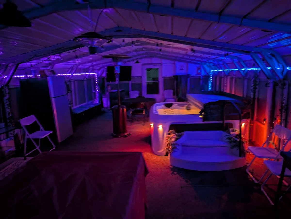 Гидромассажная ванна в помещении/игровая комната — роскошный трейлер для глэмпинга!