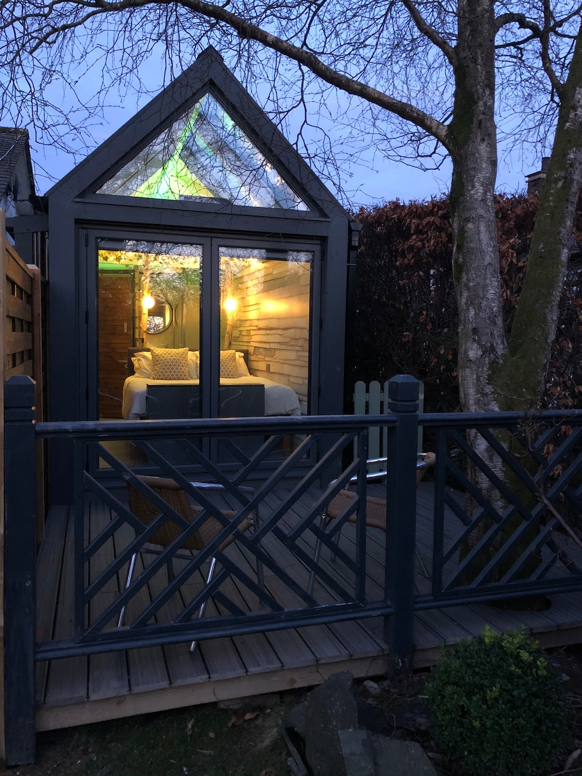 Уютно расположиться в Scandi Sky Hut и посмотрите на звезды через стеклянную крышу. Вдохновленные скандинавской экономией пространства, двуспальная кровать размера «king-size», «костер» для изменения цвета окружающей среды, мини-холодильник, кофейная станция, развлекательные системы и ванная комната с отличным двойным душем были с любовью встроены в эту очаровательную деревянную хижину с дополнительной террасой. Scandi Sky Hut и The Scandi Hut расположены в нашем саду, с частной парковкой и в 20 минутах ходьбы от озера Уиндермир.