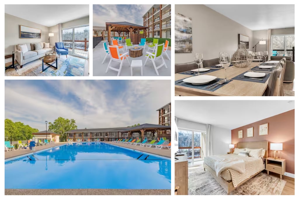 Насладитесь стильным и расслабляющим отдыхом на первоклассном курорте Брэнсона. Наш роскошный кондоминиум расположен в закрытой деревне Pointe Royale Golf Village. Это идеальное сочетание комфорта и азарта — всего в нескольких минутах от знаменитого развлекательного района Брансона. Роскошная квартира – продуманный дизайн со всей мебелью West Elm, без каких-либо затрат. Специальное предложение: проживание и гольф всего за 60 долларов с человека! Удобства курорта – поле для гольфа PGA, открытый сезонный бассейн, гидромассажная ванна и крытый бассейн.