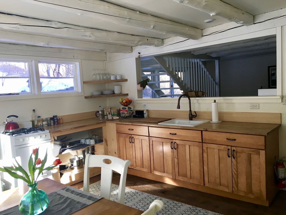 Спокойный, романтический отдых в этой потрясающе большой отремонтированной квартире 1850-х годов. Исторический амбар расположен в акрах природы. Многие старые кленовые и сосны, пешеходные тропы и захватывающие виды встретят вас здесь. Если вы хотите забронировать оздоровительный ретрит, я предлагаю гостям сеансы рэйки. Узнайте при бронировании. *Гора Сноу находится в 35 минутах ходьбы. Okemo, Stratton, Bromley и Magic находятся в часе езды, а Страттон - в часе езды.