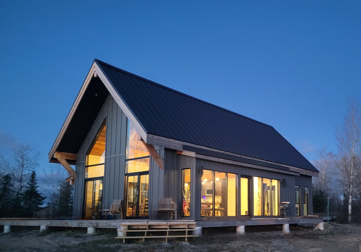 Escape to Aurora Modern Cabin, a stunning modern retreat on 22 private acres. Perfect for 4 guests, this luxe space features a loft, fast Starlink Wi-Fi for remote work, a cozy fireplace, and an electric sauna. Unwind in seclusion, watch for northern lights from the loft, and explore nearby Bear Head State Park. Your ultimate Northwoods getaway awaits! 1 dog allowed. Dog owners - read the PETS section before booking please.