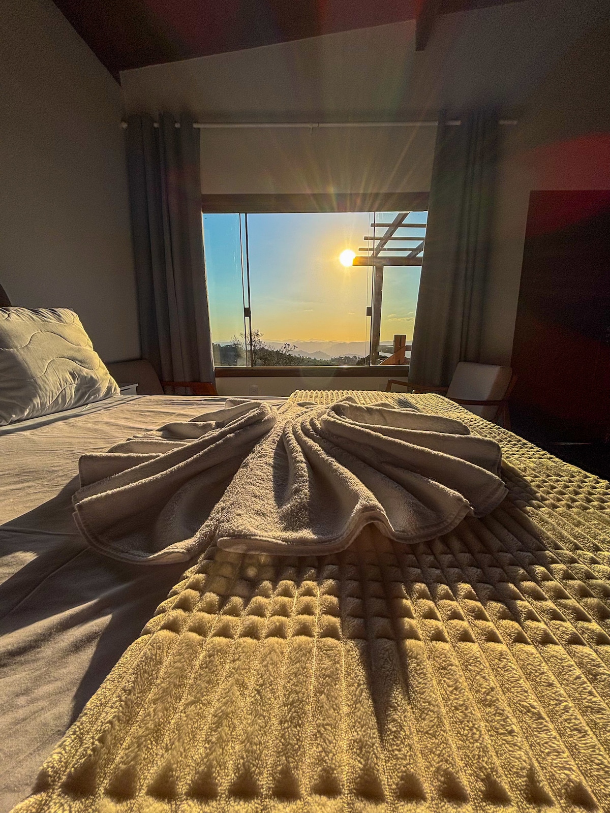 Наше шале сочетает в себе очарование и уют с захватывающим видом: из ванны вы можете расслабиться, любуясь Педра-Азул, а из шале также открывается вид на Педра-ду-Форну-Гранди и Пику-да-Бандейра. Наше жилье предлагает полный и незабываемый опыт. Помимо проживания, гости могут насладиться эксклюзивными экскурсиями, такими как экскурсия по пещере Санта-Барбара и посещение ранчо, где можно покататься на лошадях, пожарить зефир на костре, готовить на дровах и ловить рыбу.