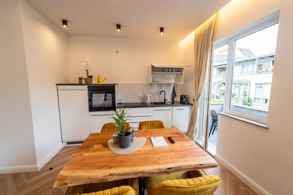 Эти студии площадью 24 кв. м идеально подходят для двух гостей. Все они обставлены современной мини-кухней с раковиной, плитой и микроволновой печью, двуспальной кроватью (160x200) и ванной комнатой с душем. Вы найдете обеденный стол, где можно насладиться едой или работать удаленно в этих комнатах.