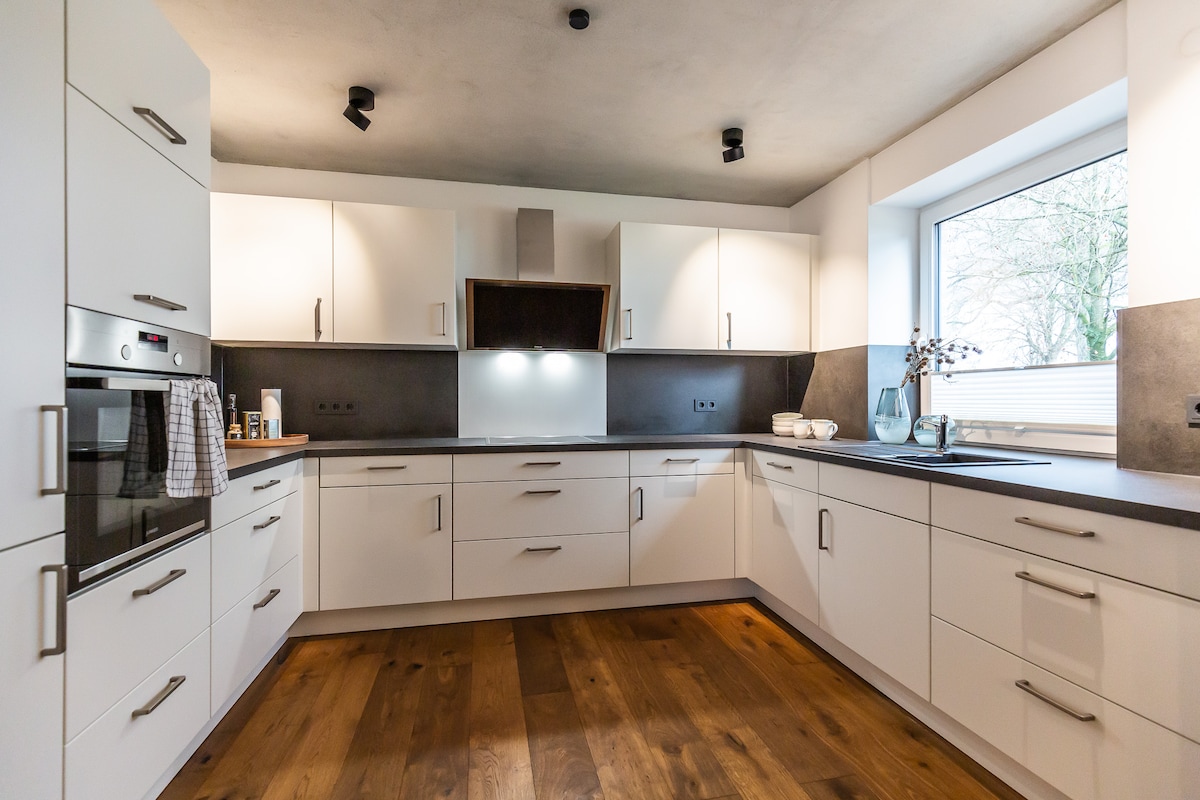 Наш отпускной дом в сельской местности, недавно оборудованный в июне 2023 года, предлагает вам достаточно места в стильном дизайне. Расслабьтесь в сауне, приготовьте вместе на высококачественной кухне и насладитесь прекрасным видом на сельскую местность почти из каждой комнаты. В студии можно заняться спортом или просто расслабиться. На 250 квадратных метров вы найдете всё, что хочет отдохнуть. Чувствуйте себя как дома.