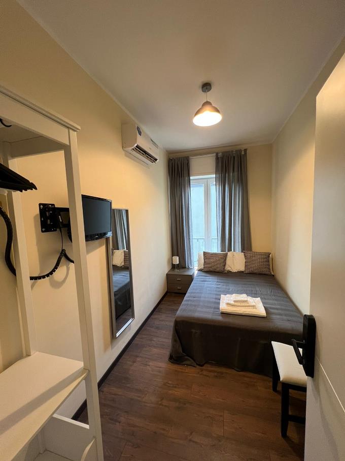 The room features a king-sized bed with a shared bathroom. A flat-screen television , a little desk and a closet is available in the room. Room CANNETO is equipped with an air-conditioner and a heater. tHE room can accommodate up to 2 guests. includes bed linen, towels set and bathrobe per person are provided in the room.