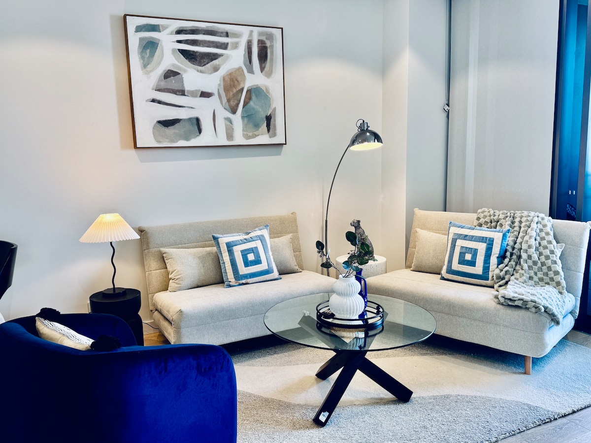Стильная квартира с 1 спальней. Очень удобная кровать размера Queen size с высококачественным постельным бельем, 2-й телевизор в спальне. Офисное помещение с раскладным столом, монитор доступен, предоставляется 5G Интернет. Если планируете провести большую ночь, то мы близки ко всему. Если вы ищете ленивое жилье, то предоставляются кофе/чай, хлопья и тосты, чтобы вы могли немного отдохнуть. Для приятных летних вечеров есть дополнительная обеденная зона на балконе. В здании нет парковки, однако рядом есть парковка.