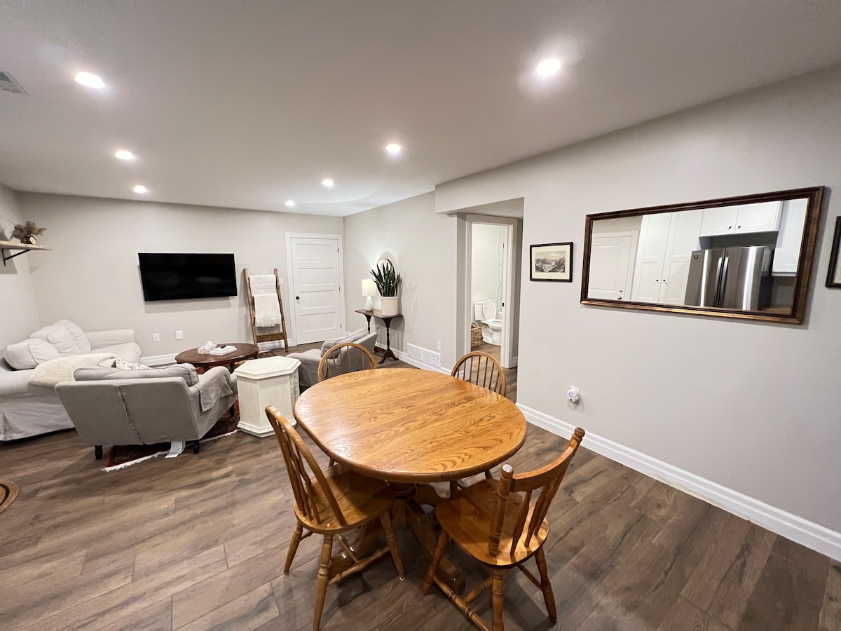 Новая квартира-студия с отдельным входом. Полностью меблированная кухня, новая двуспальная кровать размера Queen size, вся новая мебель, включая письменный стол, Wi-Fi, много места для хранения, новый холодильник, плиту, микроволновую печь, 42-дюймовый телевизор и посудомоечную машину. В квартире есть собственная стиральная машина и сушилка, а перед ним открывается великолепный вид на озеро. Рядом кинотеатры, боулинг, рестораны, торговые центры, продуктовые магазины, большой государственный рекреационный парк, лыжи и удобные для аэропортов. Ванная комната внутри с 2 креслами-креслами.