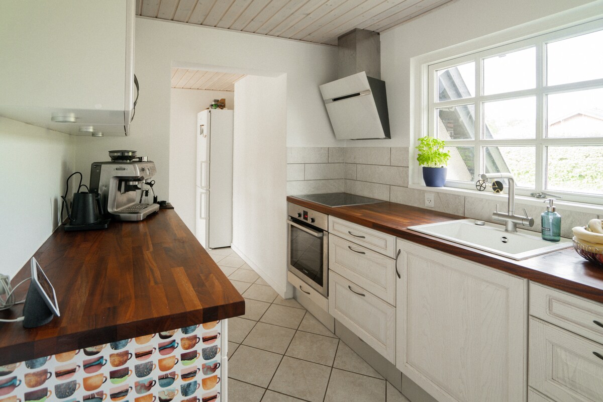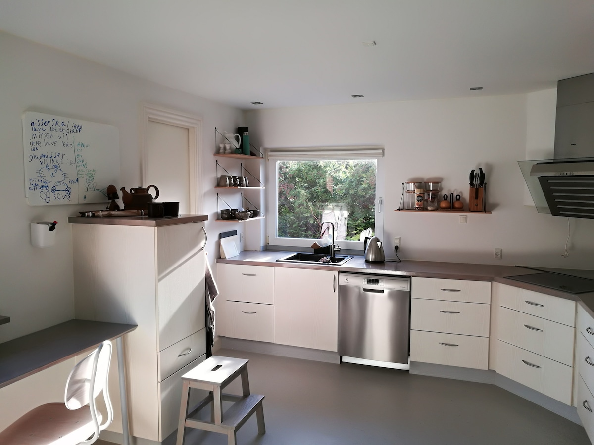Отдохните с семьей в этом тихом жилье. Деревянный дом имеет две хорошие спальни и открытый навес с двумя дополнительными матрасами. Сад уютный, с хорошей террасой вокруг всего дома. В доме есть прекрасная кухня с большой зоной отдыха, обеденным столом, а также большая и просторная кухня. В доме есть высокий стул и детская кроватка, а также немного игрушек. Вы можете легко и бесплатно припарковаться прямо перед домом, и отсюда недалеко до центра Копенгагена, до которого можно добраться на автомобиле или поезде.