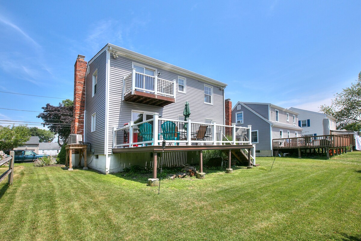 3 спальни (1 кровать размера King size, 2 кровати размера Queen size), 1,5 ванные комнаты и выдвижная кровать. Недалеко от пляжа. Очень близко к винодельням, пивоварням, полям для гольфа, государственным паркам, фермам, ресторанам, аквапарку Splish-Splash и торговому центру Tanger Mall. Недалеко от исторической главной улицы Риверхед с ресторанами, набережной Ривер-Уолк и аквариумом. К услугам гостей душ на открытом воздухе, выход на пляж и большой задний двор для барбекю. Огороженный двор. Отлично подходит для отпуска, поездок на гольф, девичников и свадеб. Подходит для детей.