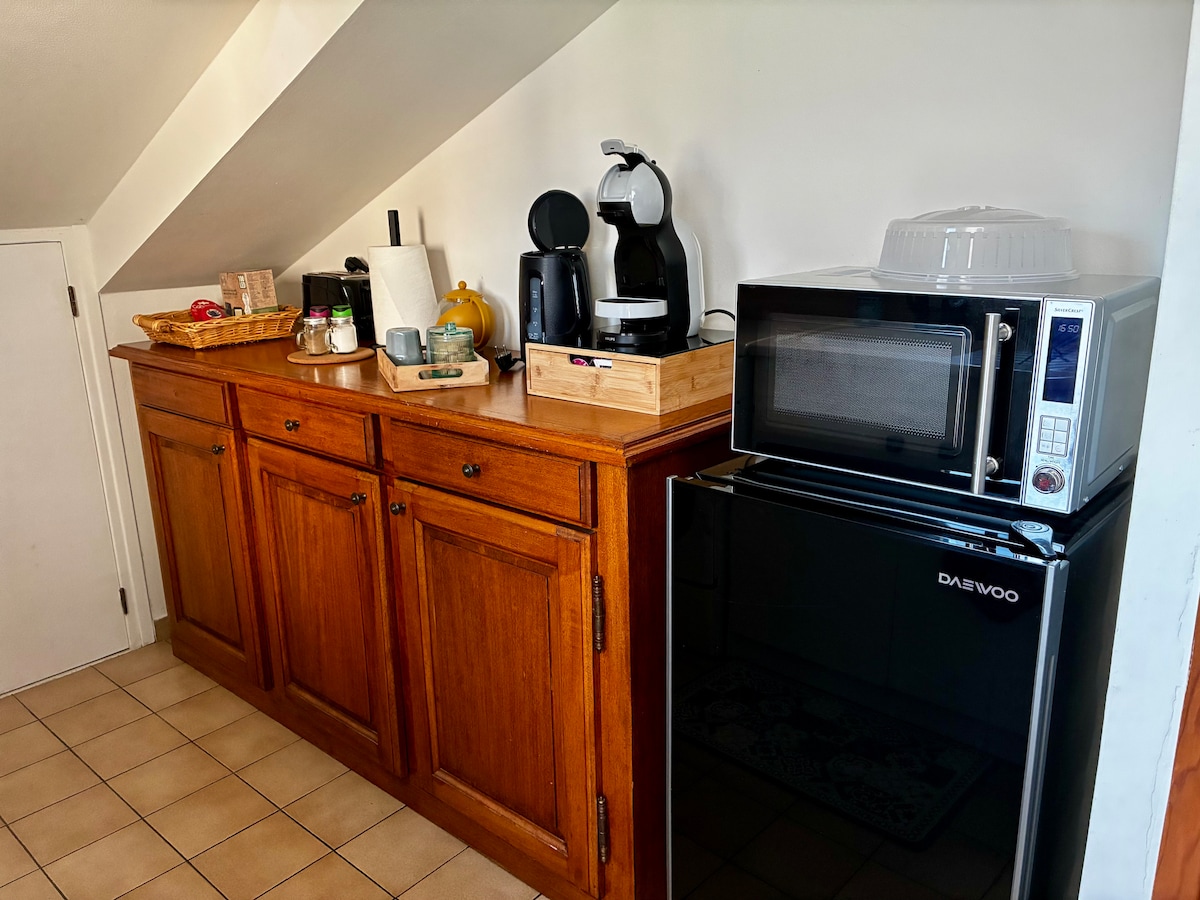 Необычное размещение в атмосфере "хоббита", расположенного в диком саду с видом на город. Доступ через пешеходную тропу (склон). В числе удобств гостиная с камином, небольшая кухня, альков для спальни, небольшая ванная комната, терраса с видом на долину и город (в 1 км), и новинка, ванна с подогревом дерева (за исключением лета) Свечи и музыка доступны для атмосферы Идеальный романтический отдых или тайм-аут!