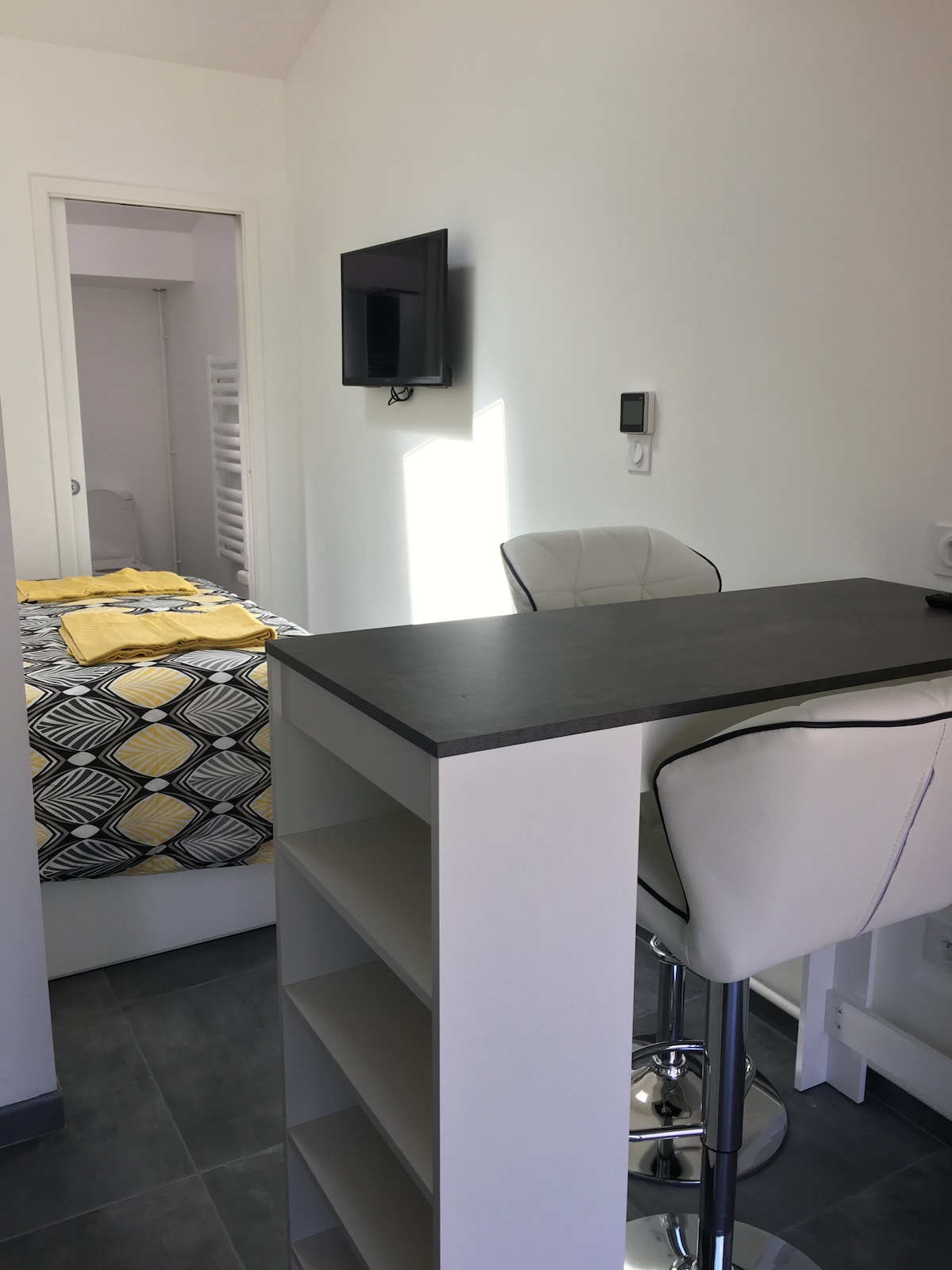 Очень светлая студия в 5 минутах от трамвая D в жилом районе. Возможность безопасно парковать автомобиль. Небольшая терраса с сиденьями и столом Netflix и YouTube Идеально подходит для выходных в Бордо . Все магазины поблизости с велосипедной дорожкой к Лаканау и парку . Легко добраться до аэропорта или объездной дороги, чтобы добраться до пляжа или по дорогам замков Бордо. Отдельный вход с сейфом.