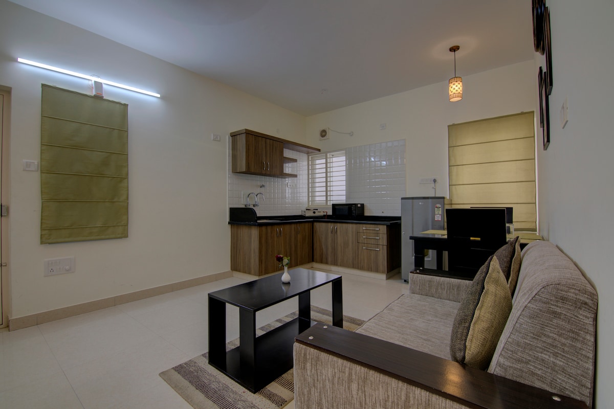 Добро пожаловать в Buteak Suites, ваше идеальное городское убежище в оживленном районе BTM Layout, Бангалор. Наши продуманные апартаменты с 1 спальней и гостиной (460 кв. футов) и очень большие апартаменты (530 кв. футов) сочетают в себе теплоту квартирной жизни с изысканностью бутик-отеля. Независимо от того, находитесь вы здесь по работе или отдыхаете, наслаждайтесь беззаботным отдыхом с современными удобствами, гибкими условиями прибытия, бесплатным доступом в тренажерный зал из фитнес-центра и ежедневной неограниченной уборкой.
